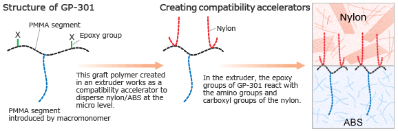 Polymer Blend Compatabilizing Mechanism (Nylon/ABS) RESEDA® (Compatibility Accelerating Resin)