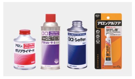 Our lineup of accessories, including primer for hard-to-adhere surfaces and curing accelerator for reducing adhesion time are available to enhance the usable of Aron Alpha®.