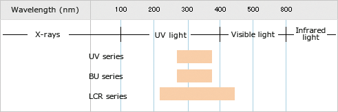 Adhesion is possible across a range of wavelengths in both UV and visible light. We also carry anaerobic-curable adhesives that can cure even in areas not exposed to UV light due to the shape of the material or adherend.